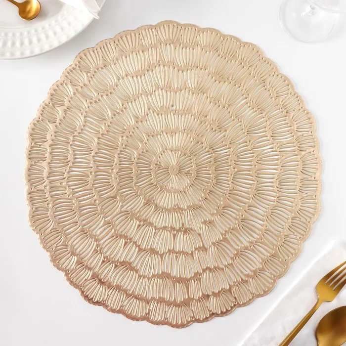 Салфетки сервировочные на стол Доляна «Бутоны», d=38 см, 4 шт., золотые