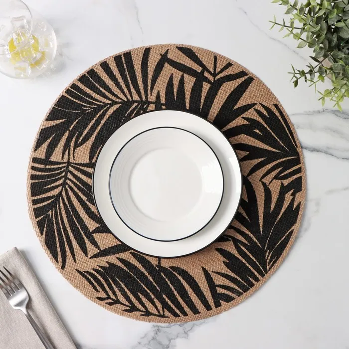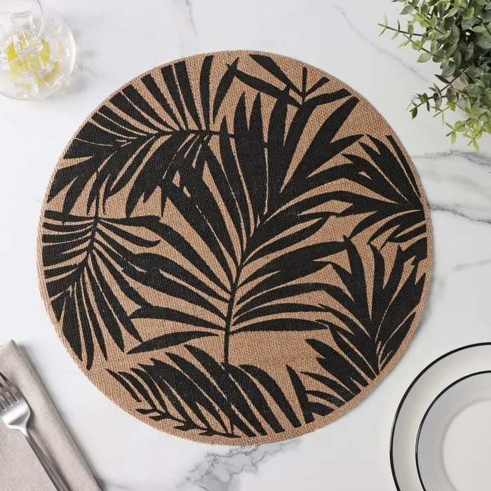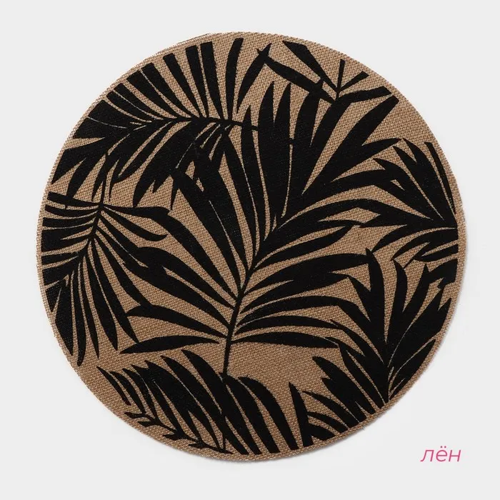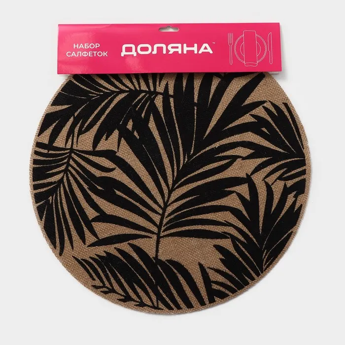 Салфетки сервировочные на стол Доляна «Листья», 4 шт., d=38 см, бежевые с чёрным рисунком — Характеристики