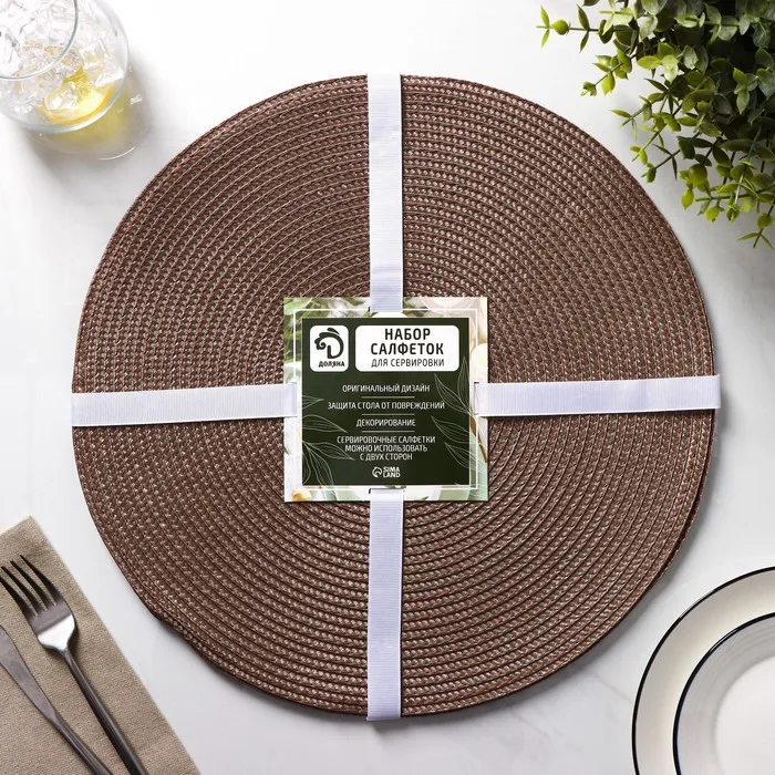 Салфетки сервировочные на стол Доляна «Лофт», 4 шт., d=38 см, коричневые — Характеристики