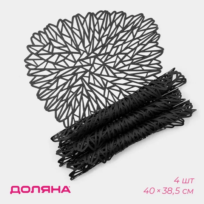 Салфетки сервировочные на стол Доляна «Луара», 4 шт., 40×38.5 см, чёрные — Характеристики