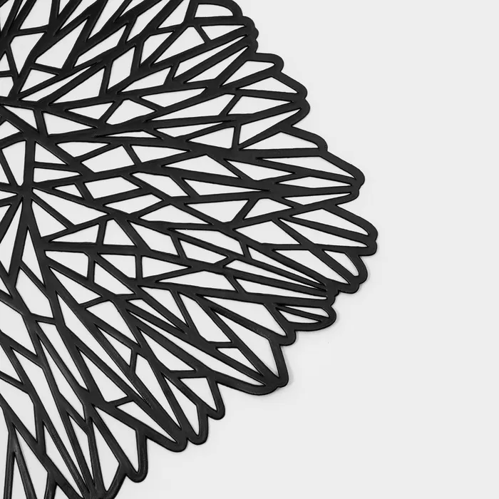 - Стильный дизайн: однотонный черный цвет и абстрактные резные узоры делают салфетки универсальными для любого интерьера.