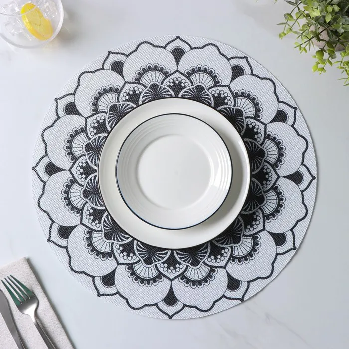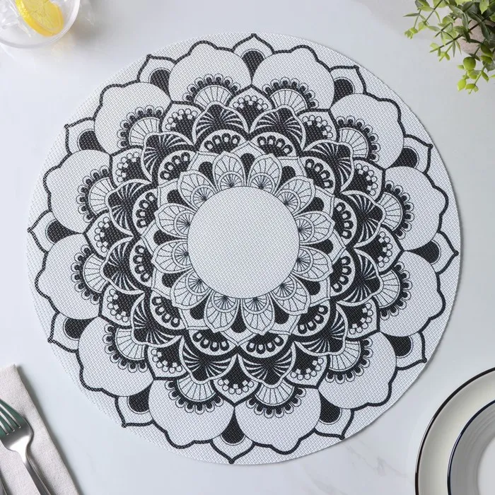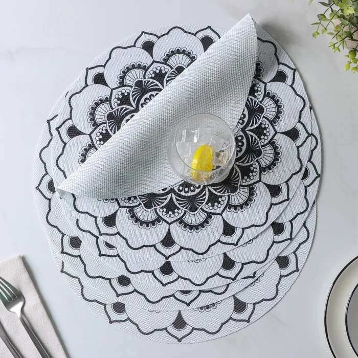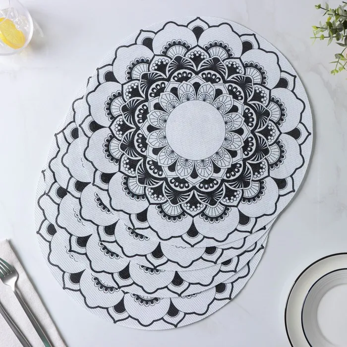 Салфетки сервировочные на стол Доляна «Мандалы», 4 шт., d=38 см, белые — Характеристики