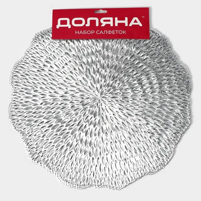 Салфетки сервировочные на стол Доляна «Мэри», d=36 см, 4 шт., серебряные — Характеристики