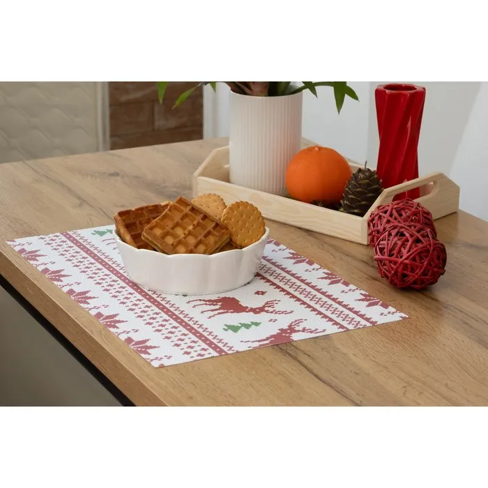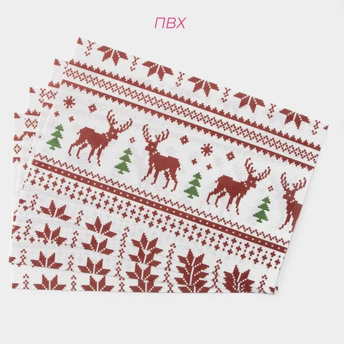 Салфетки выполнены из высококачественного ПВХ, устойчивого к истиранию и влаге, и украшены ярким новогодним дизайном. Благодаря водоотталкивающим свойствам, их можно использовать для сервировки стола и защиты поверхности от пятен и брызг.