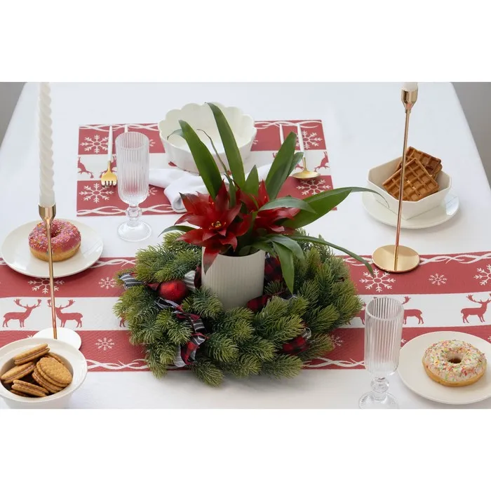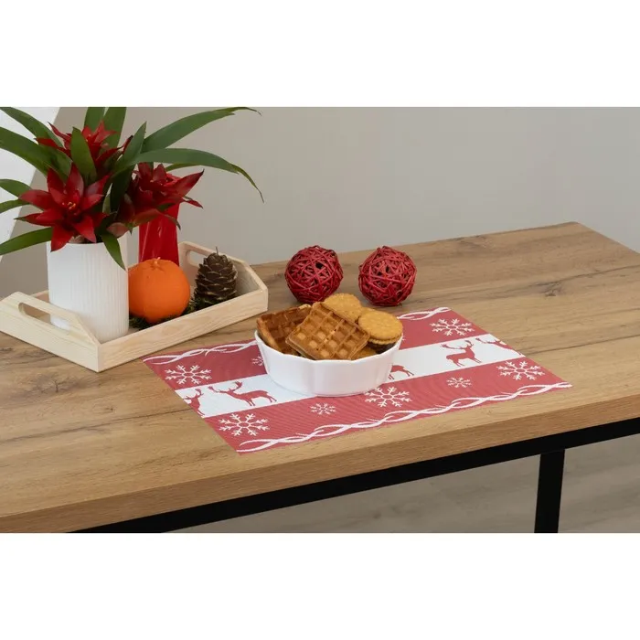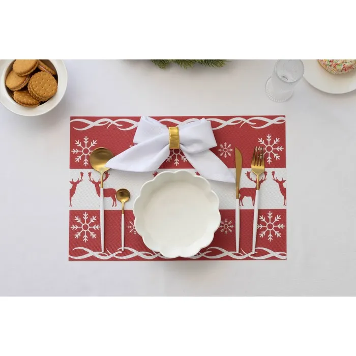 Салфетки выполнены из высококачественного ПВХ, устойчивого к истиранию и влаге, и украшены ярким новогодним дизайном. Благодаря водоотталкивающим свойствам, их можно использовать для сервировки стола и защиты поверхности от пятен и брызг.