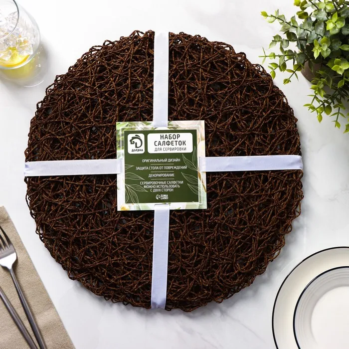 Салфетки сервировочные на стол Доляна «Одуванчик», 4 шт, d=38 см, цвет коричневый — Характеристики