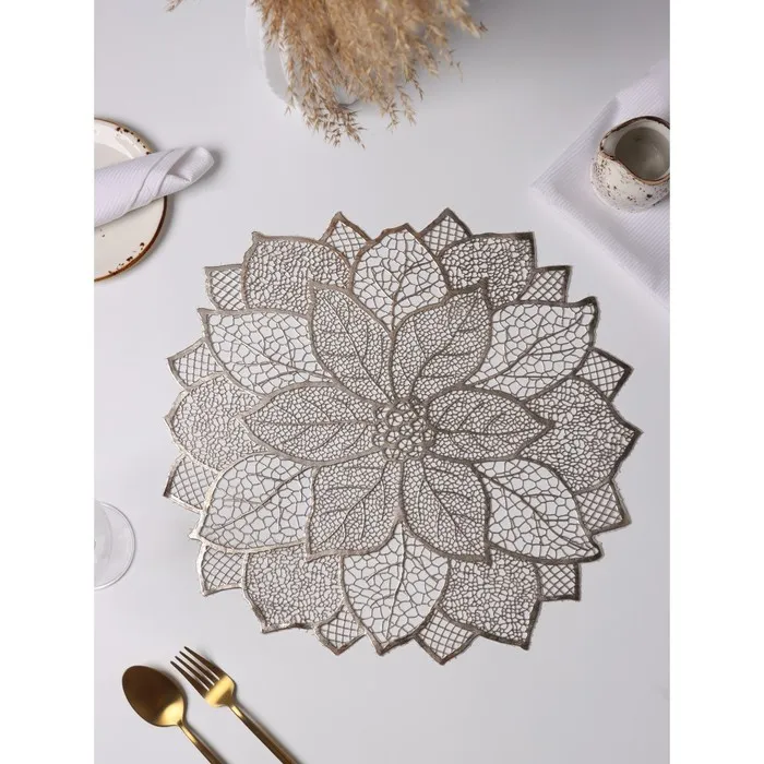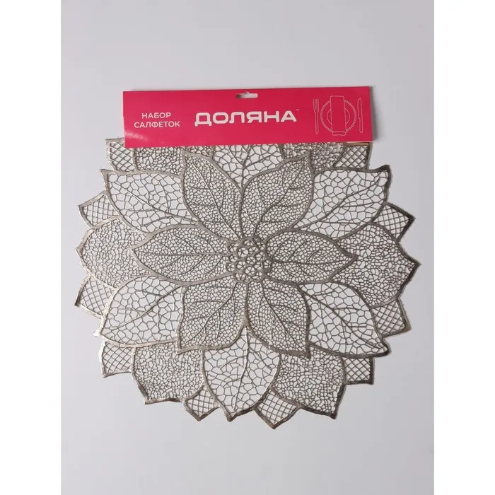 Салфетки сервировочные на стол Доляна «Цветок», 4 шт, 43×43 см, цвет золотой