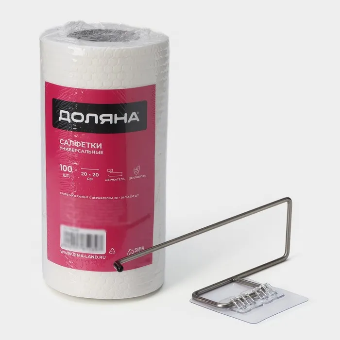 Салфетки в рулоне многоразовые безворсовые в наборе с держателем Доляна, 100 шт., 20×20 см, белые — Характеристики