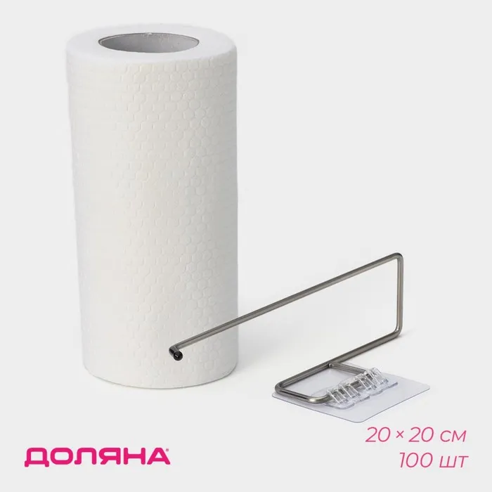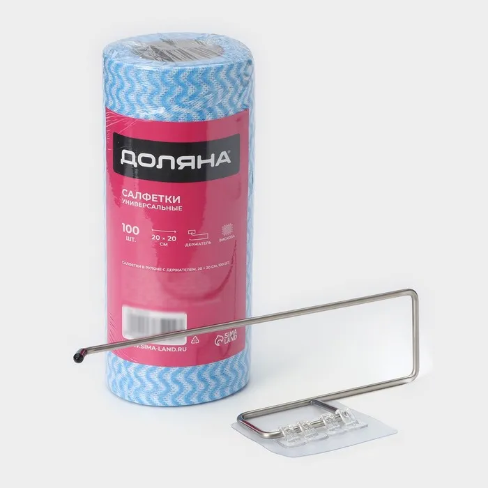 Салфетки в рулоне многоразовые безворсовые в наборе с держателем Доляна, 100 шт., 20×20 см, голубые — Характеристики