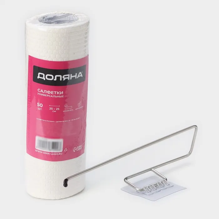 Салфетки в рулоне многоразовые безворсовые в наборе с держателем Доляна, 50 шт., 25×25 см, белые — Характеристики