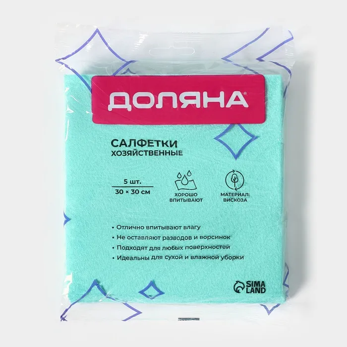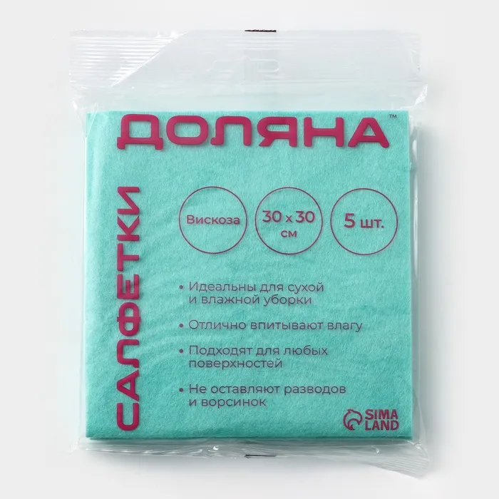 Салфетки вискозные универсальные Доляна, 5 шт, 30×30 см, зелёные — Характеристики
