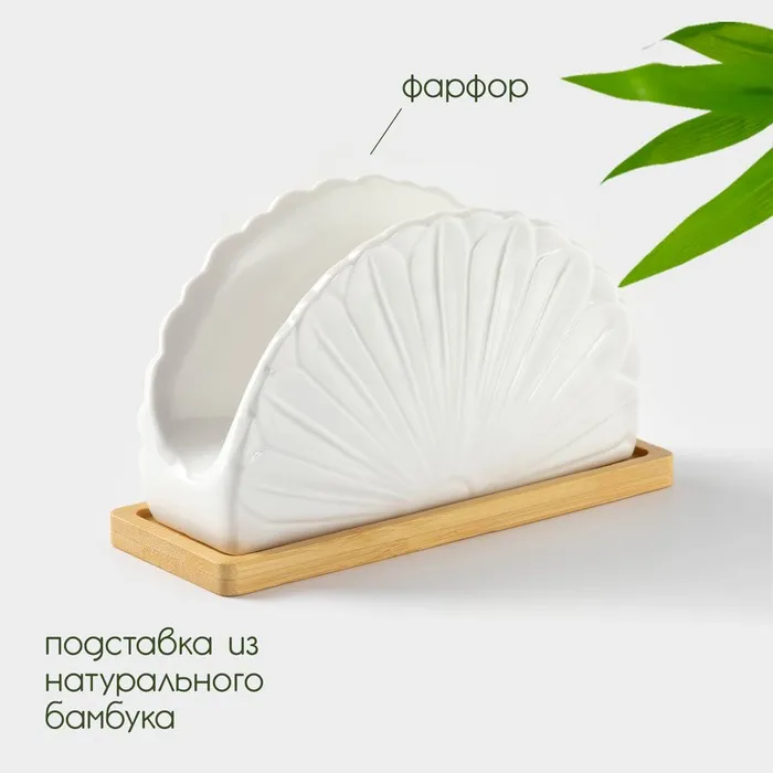 Салфетница BellaTenero «Тюльпан», 15.5×9 см, на бамбуковой подставке, фарфор, белая — Характеристики
