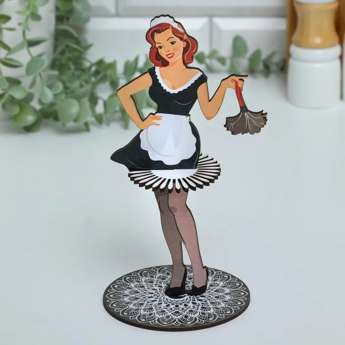Салфетница деревянная «Девушка горничная», цветная наклейка