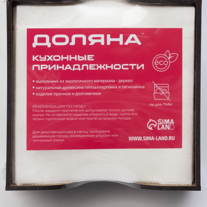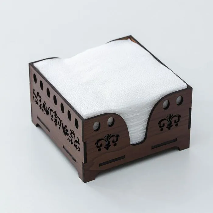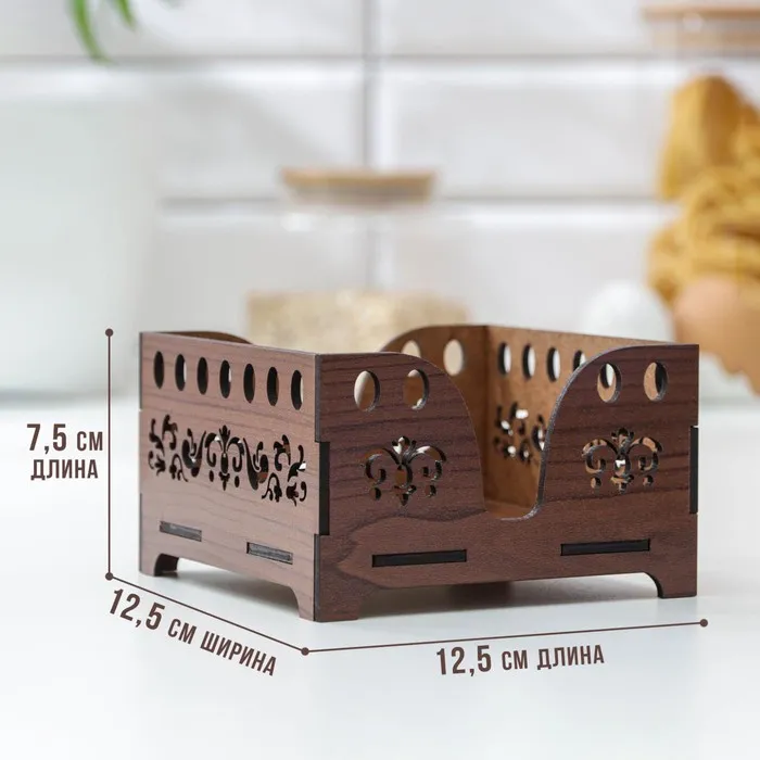 Салфетница деревянная Доляна «Орех», 12,5×12,5 см, с салфетками, коричневая — Характеристики