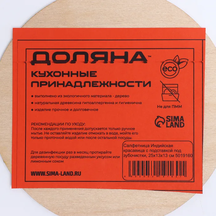 Салфетница деревянная «Индийская красавица», с подставкой под зубочистки, 25×13×13 см — Характеристики
