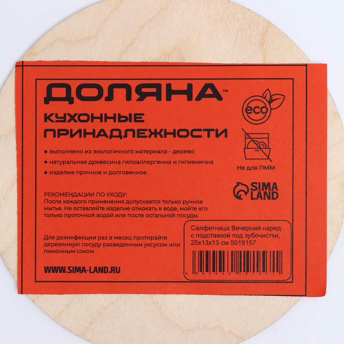 Салфетница деревянная «Вечерний наряд», с подставкой под зубочистки, 25×13×13 см — Характеристики