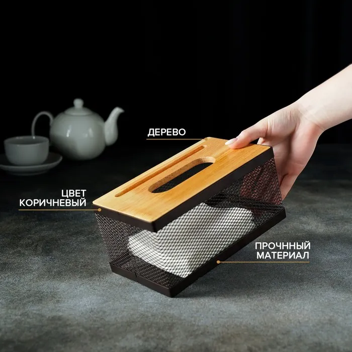 Салфетница «Эстетика», 21×12×10 см, коричневая — Характеристики