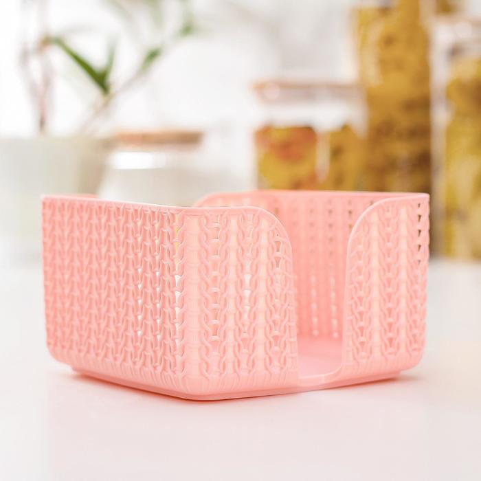 Салфетница IDEA «Вязание», пластик, 14×14×8.5 см, розовая — Характеристики