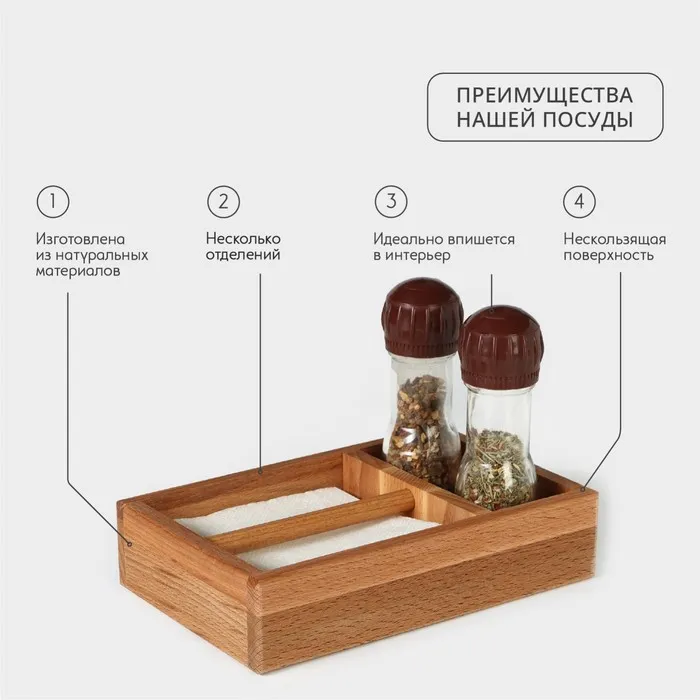 Салфетница - органайзер деревянная Adelica, 14×21,5×5 см, бук — Характеристики