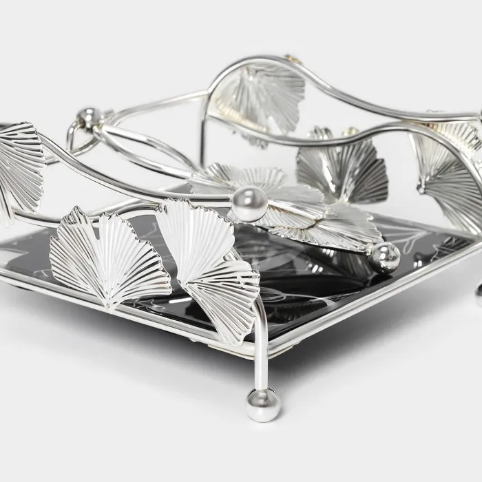 Салфетница «Цветы», 15×15×8,5 см, цвет серебряный — Характеристики