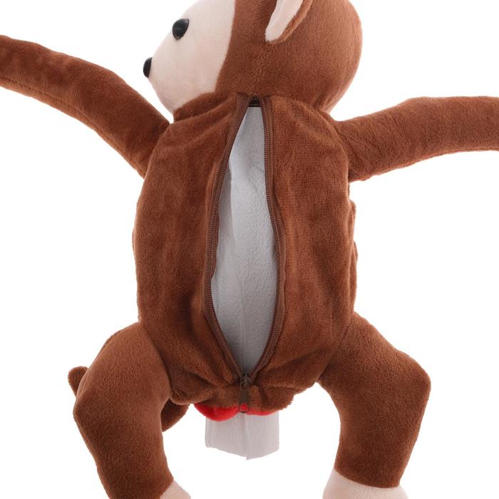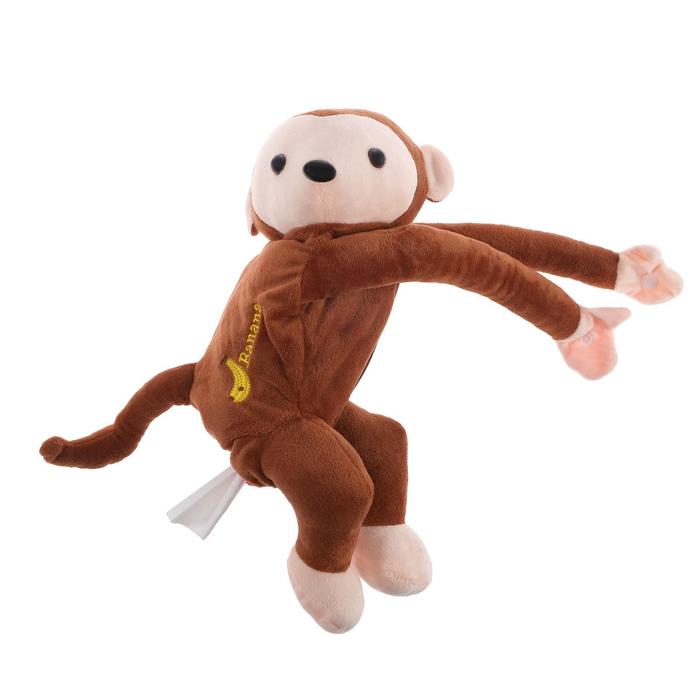 Мягкая салфетница Обезьянка может являться отличным подарком. Эта многофункциональная игрушка не даст соскучиться в дороге. Она изготовлена из мягкого плюша и крепится на подлокотник или подголовник сиденья. Таким образом, очень легко воспользоваться салфетками во время движения. Также в салфетнице можно хранить различные сладости, игрушки и различные мелочи.
