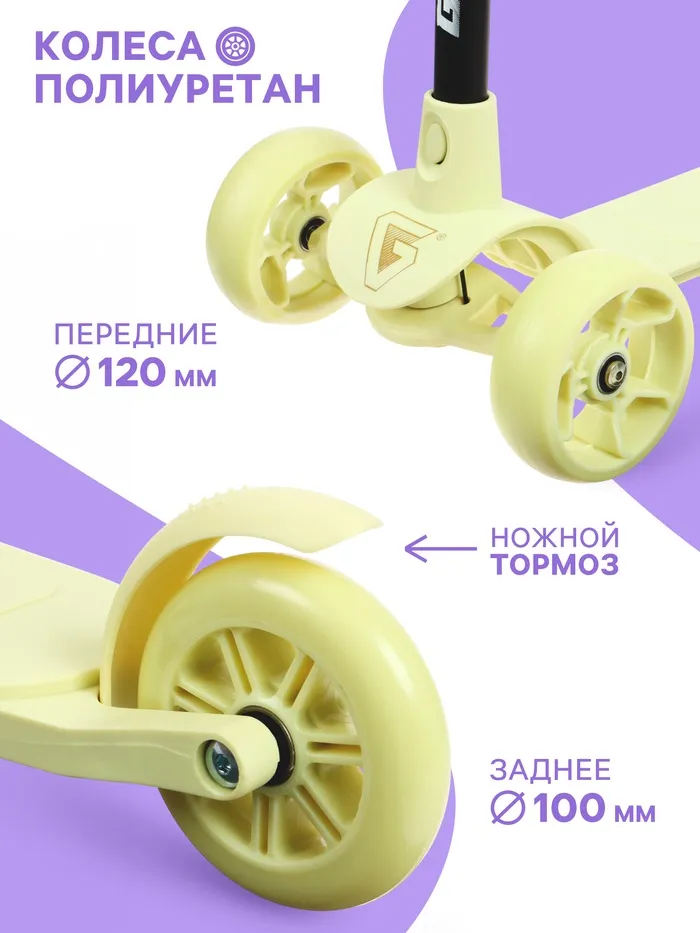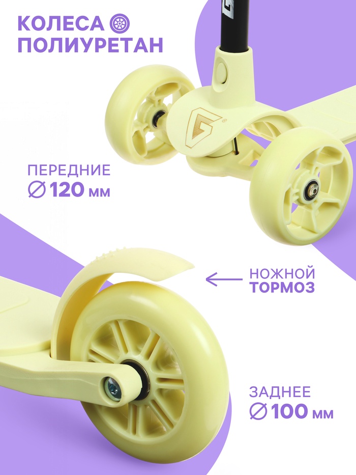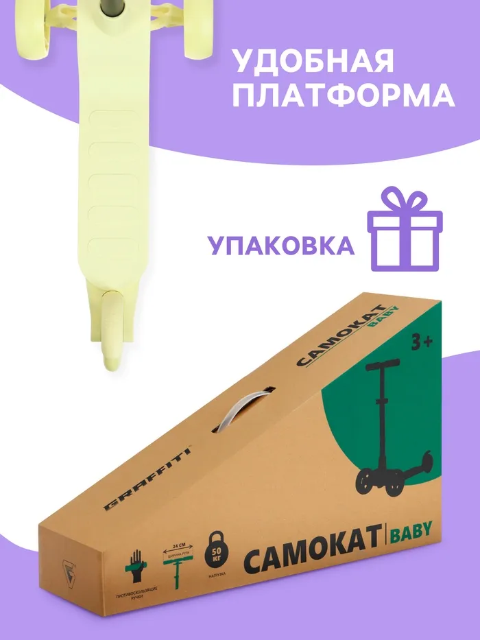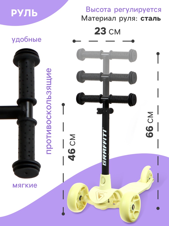 Самокат детский GRAFFITI Baby 24, колёса PU 120/100 мм, жёлтый — Характеристики