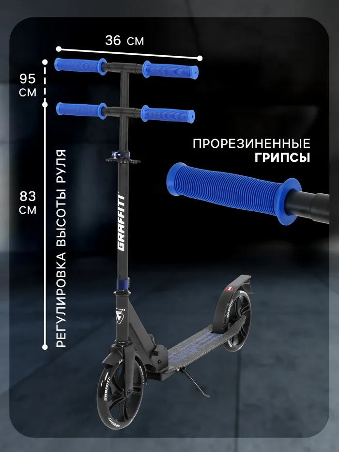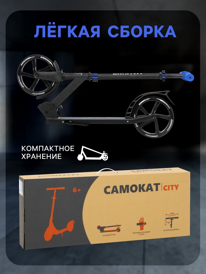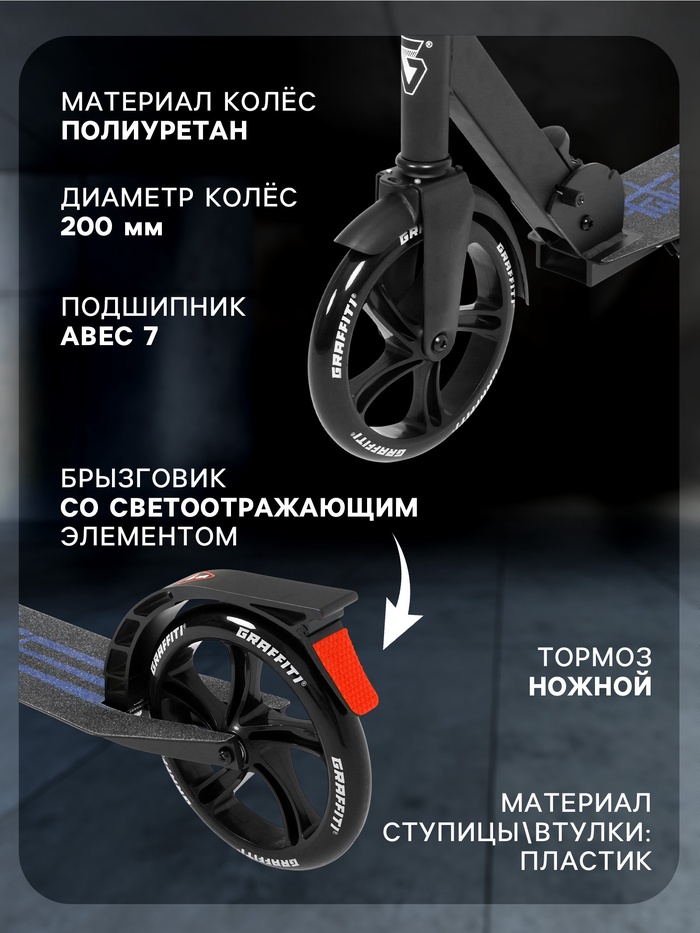 Самокат городской GRAFFITI City 200, складной, колёса PU 200 мм, ABEC 7 Carbon, цвет чёрный — Характеристики