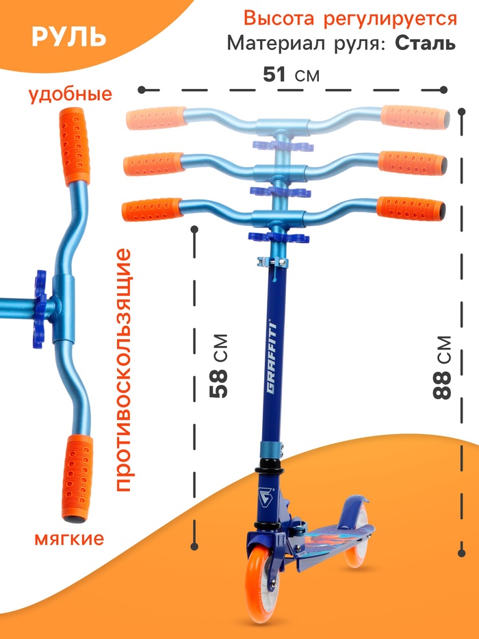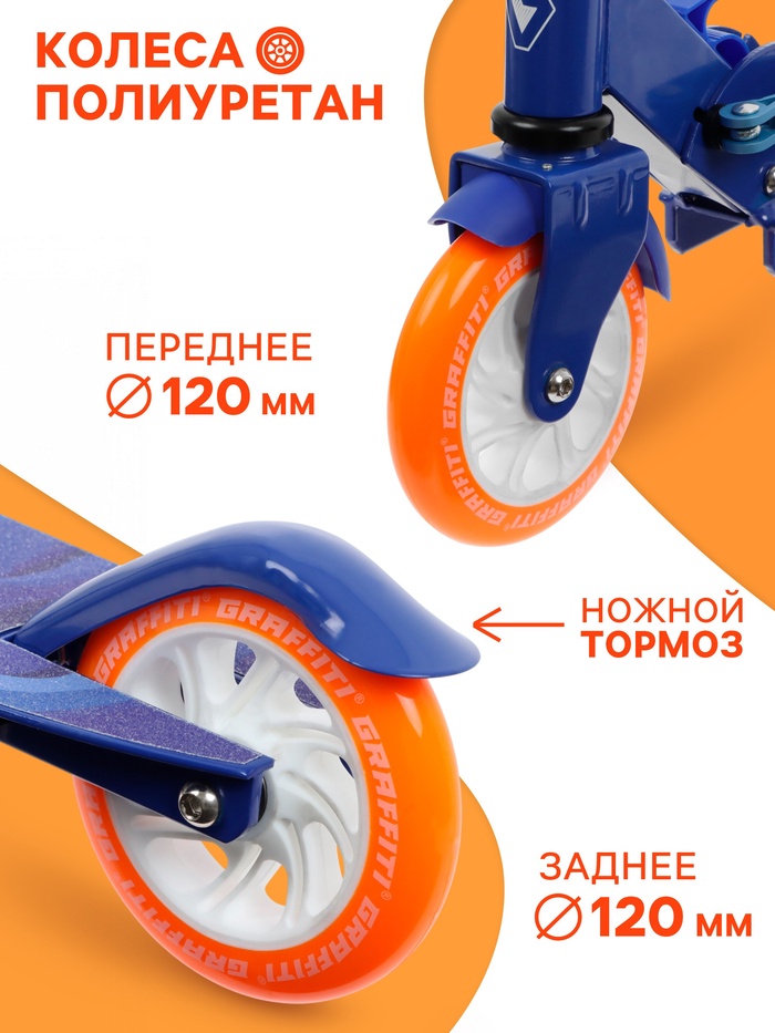 Самокат городской GRAFFITI Comfort 120, складной, колёса PU 120 мм, ABEC 7 Carbon — Характеристики