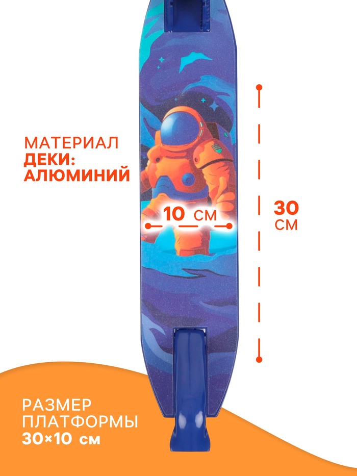 Детский самокат подойдёт для прогулок и игр на свежем воздухе. Он помогает ребёнку развивать координацию движений, равновесие и моторику. Модель оснащена облегчённой декой из алюминия и прочным стальным рулём.