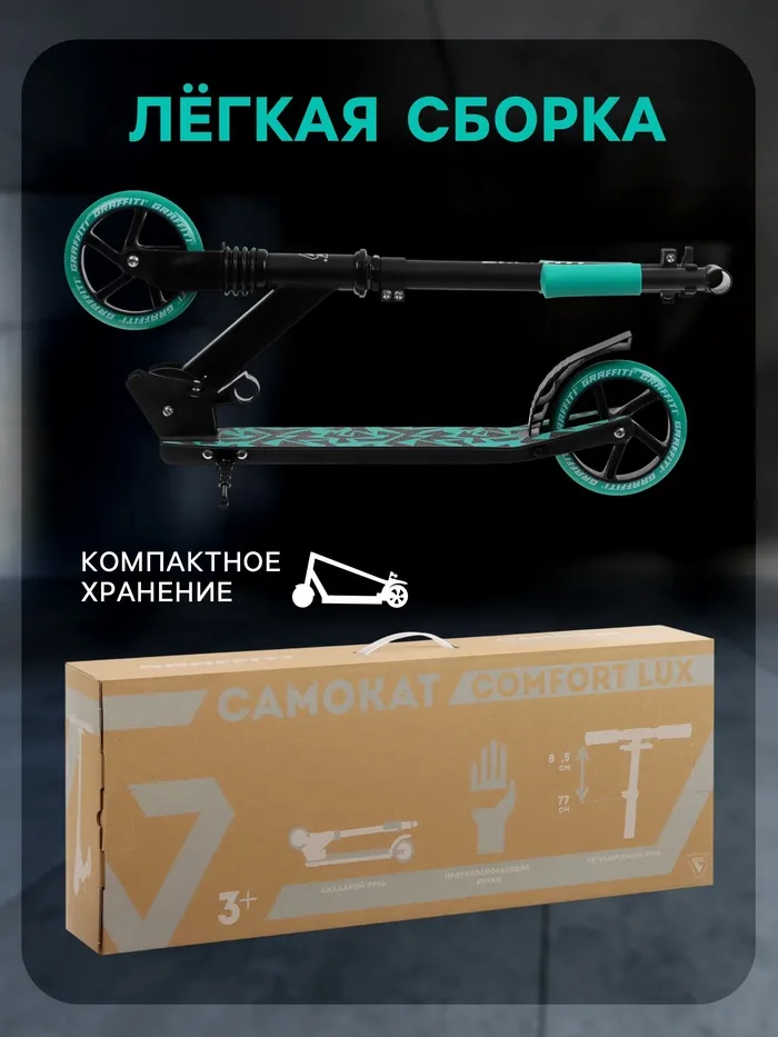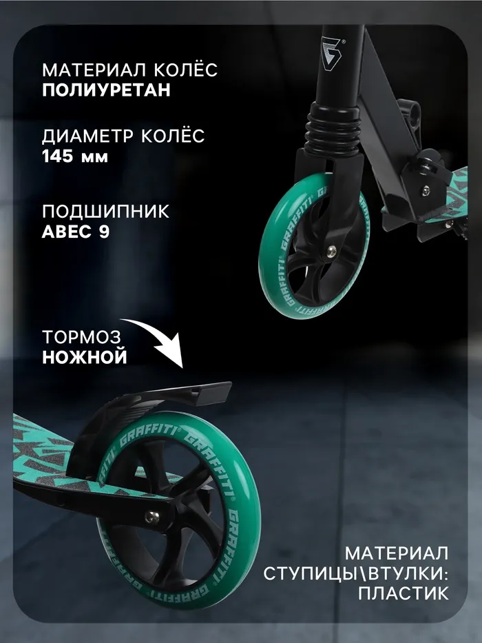 Самокат городской GRAFFITI Comfort Lux 145, колёса PU 145 мм, с передним амортизатором, ABEC 9 Carbon — Характеристики