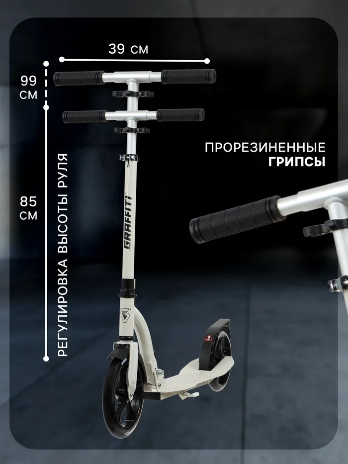 Самокат городской GRAFFITI Cruiser 230, складной, колёса PU 230/200 мм, ABEC 9 Carbon, цвет белый — Характеристики