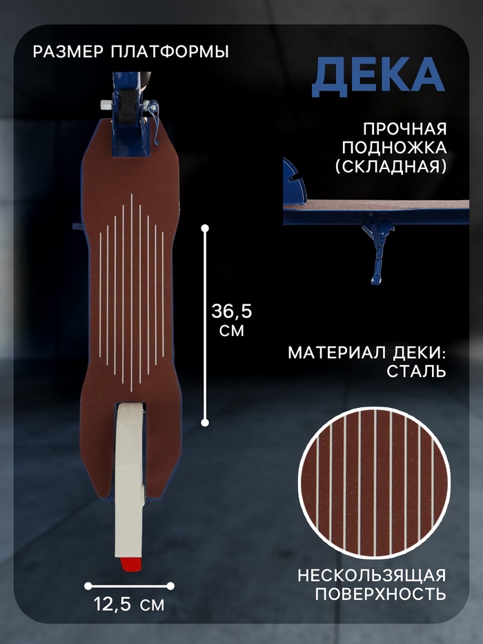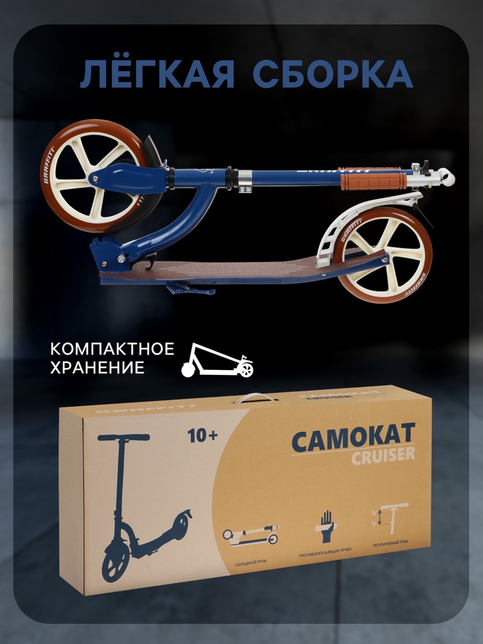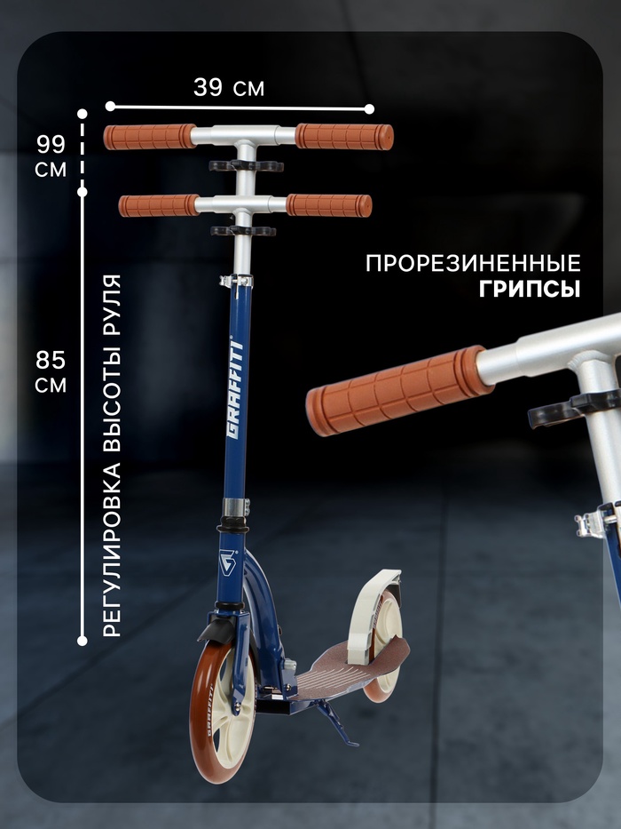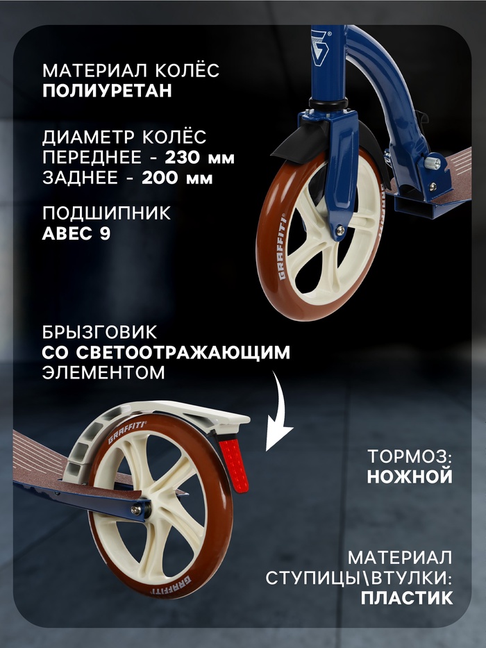 Самокат городской GRAFFITI Cruiser 230, складной, колёса PU 230/200 мм, ABEC 9 Carbon, цвет синий — Характеристики
