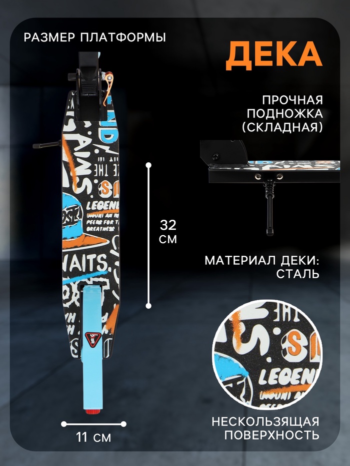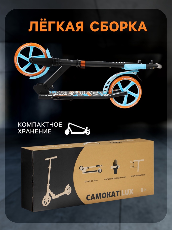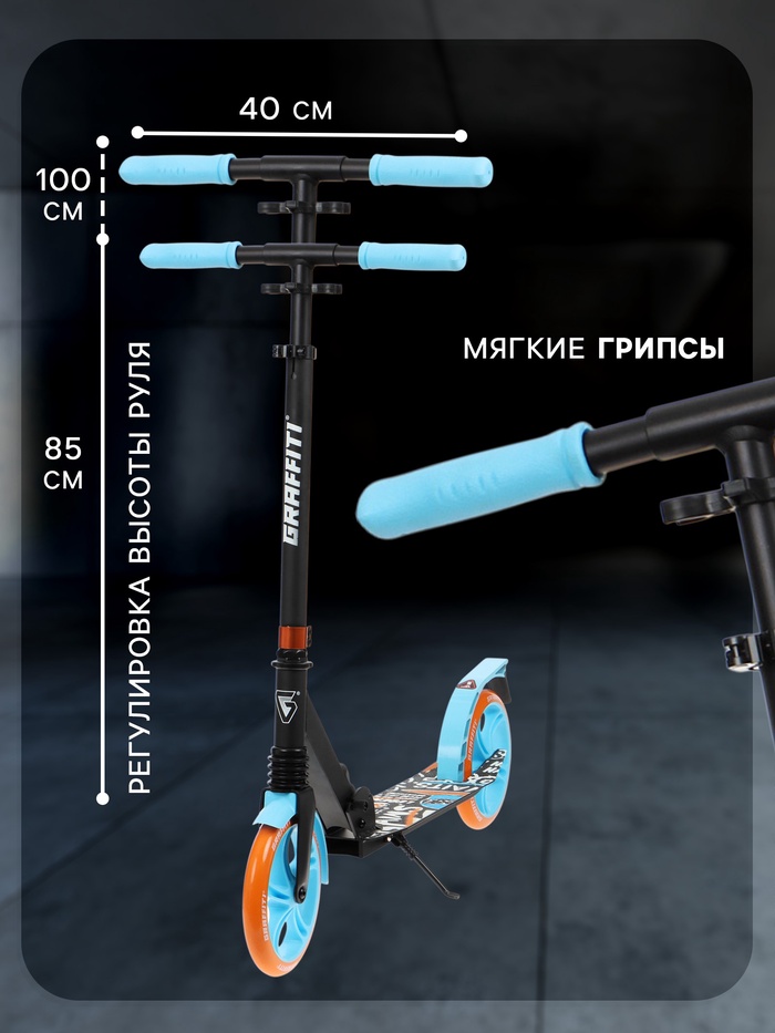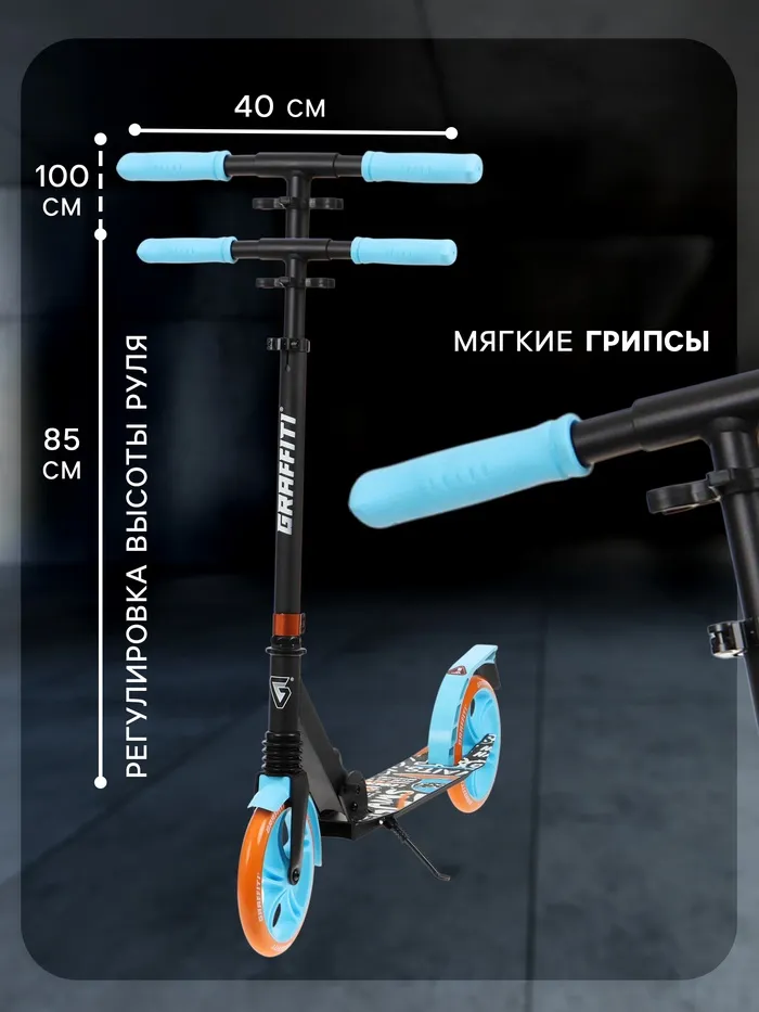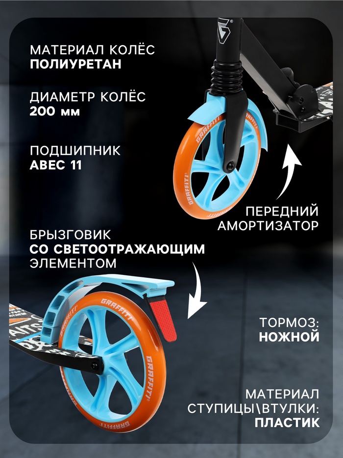 Самокат городской GRAFFITI Lux 200, колёса PU 200 мм, амортизатор передний, ABEC 11 Carbon, цвет чёрный — Характеристики
