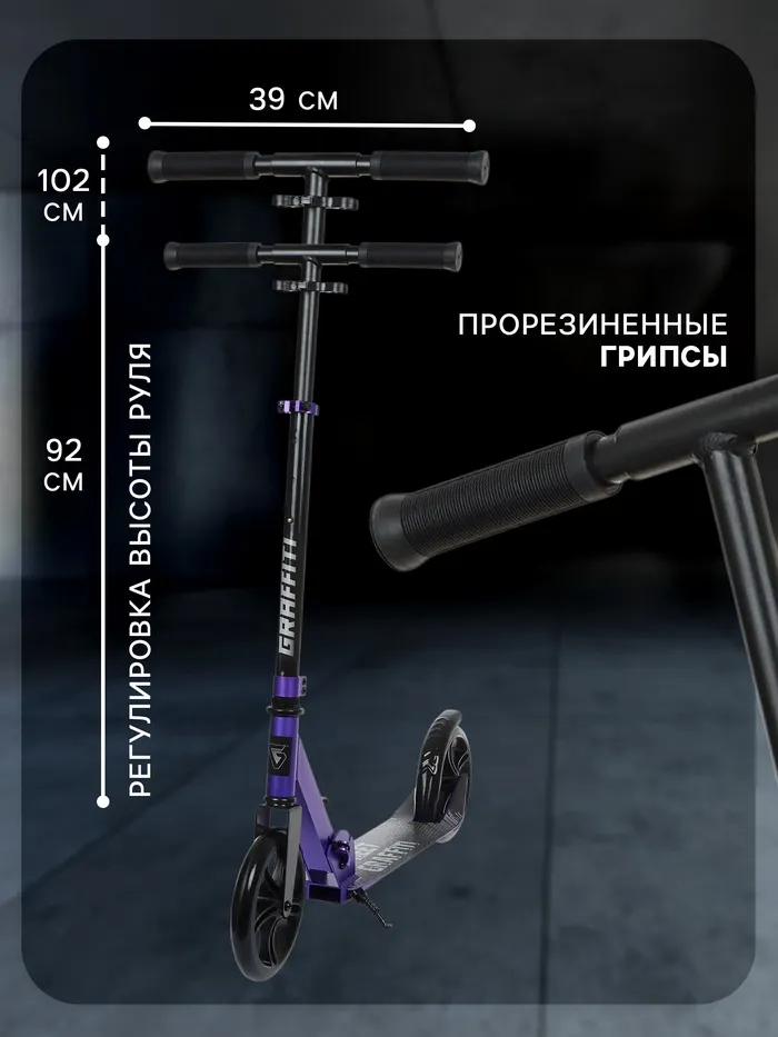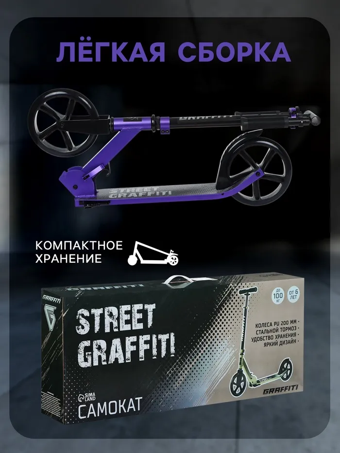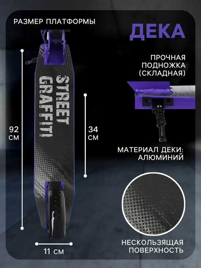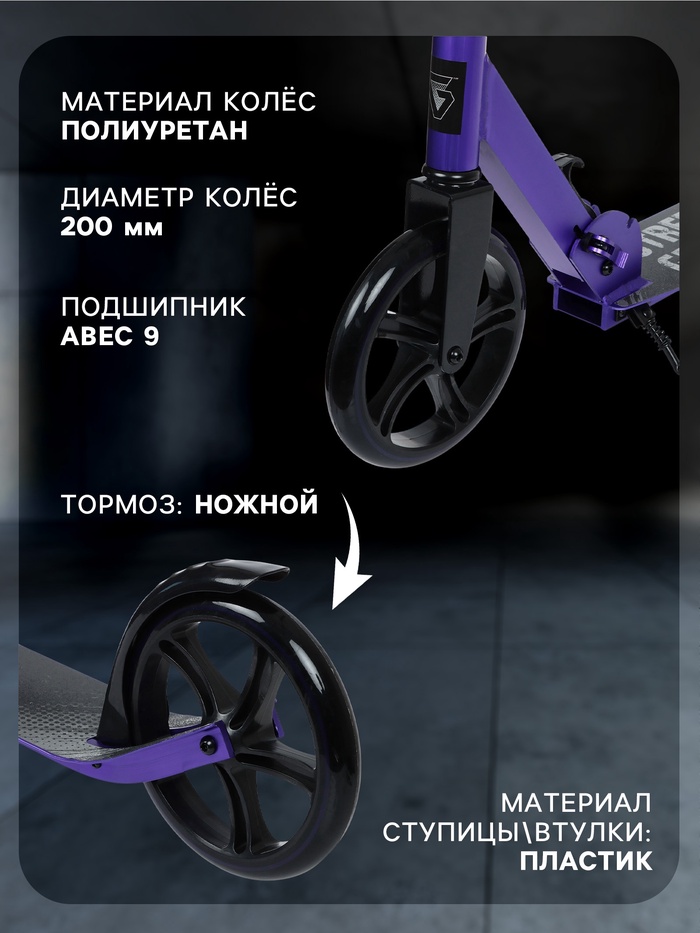 Самокат городской GRAFFITI, складной, колёса PU 200, 86A, ABEC 9, подножка, цвет фиолетовый — Характеристики
