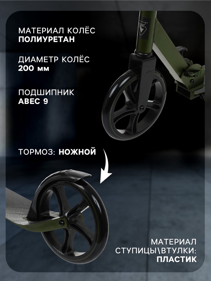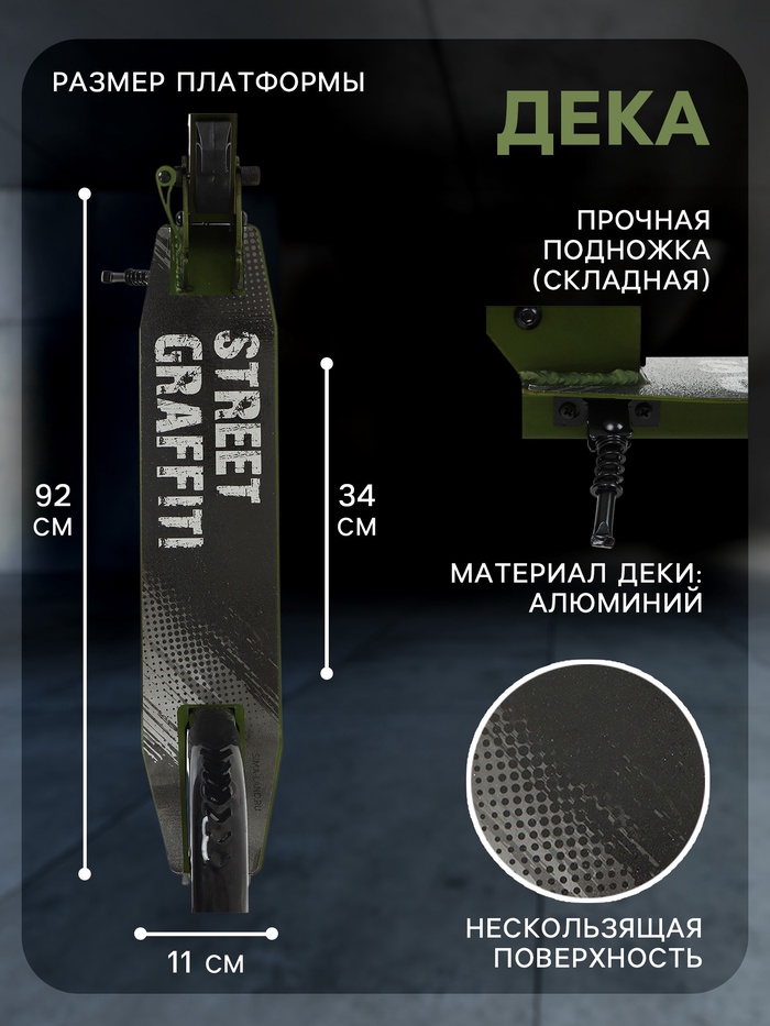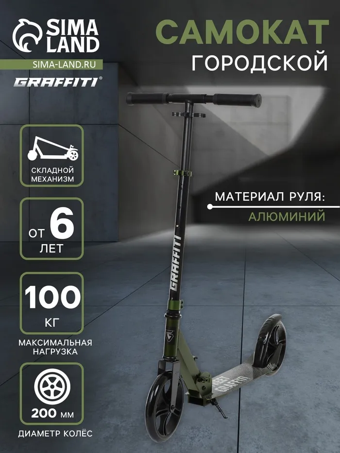 Самокат городской GRAFFITI, складной, колёса PU 200, 86A, ABEC 9, подножка, цвет хаки — Характеристики