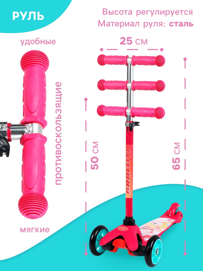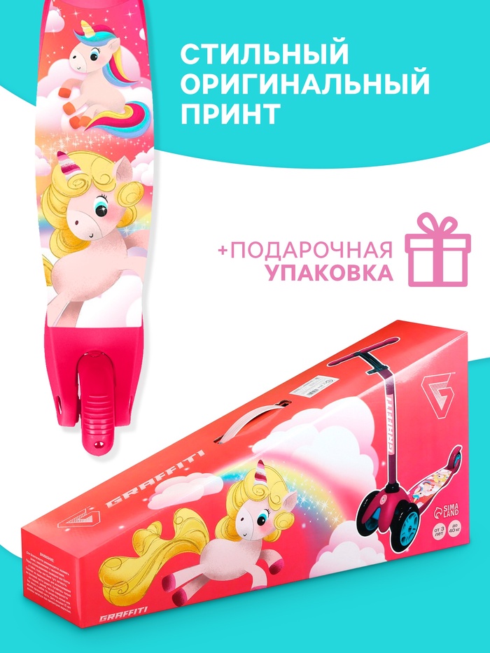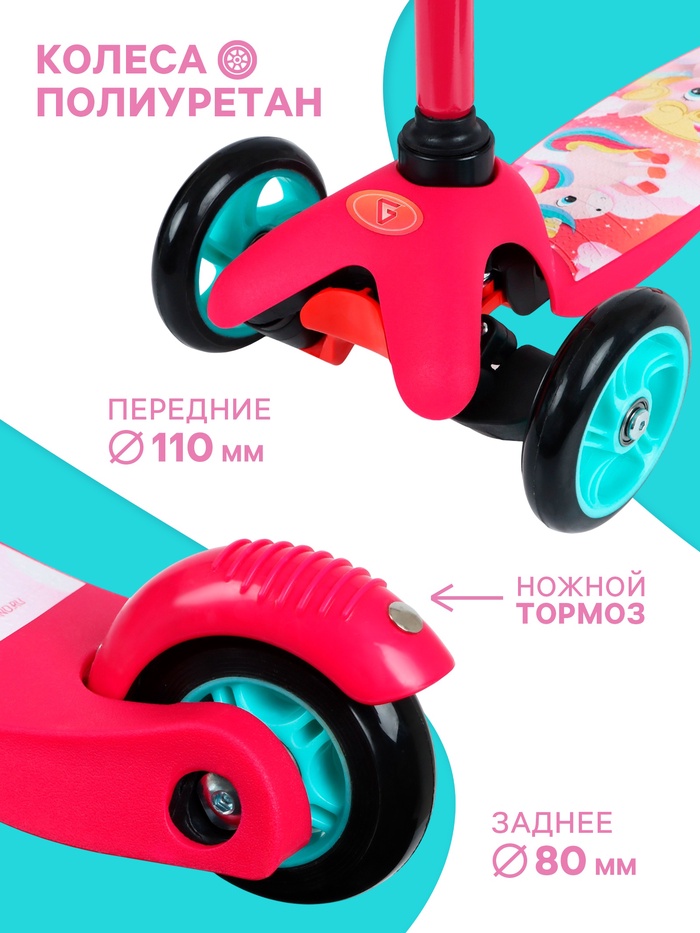 Самокат GRAFFITI «Единорожки», колёса PU 110/75 мм, ABEC 7, цвет розовый — Характеристики