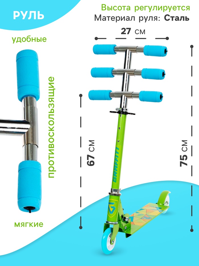 Самокат GRAFFITI «Геометрия», складной, колёса PVC 100 мм — Характеристики