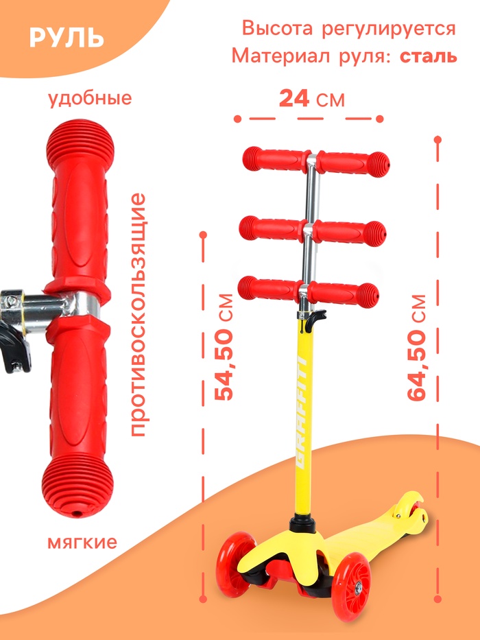 Самокат GRAFFITI, колёса световые PU 110/75 мм, ABEC 7 — Характеристики