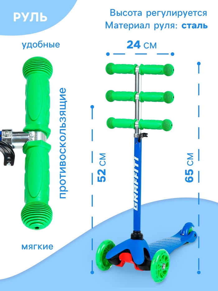 Самокат GRAFFITI, колёса световые PU 110/75 мм, ABEC 7, цвет синий — Характеристики