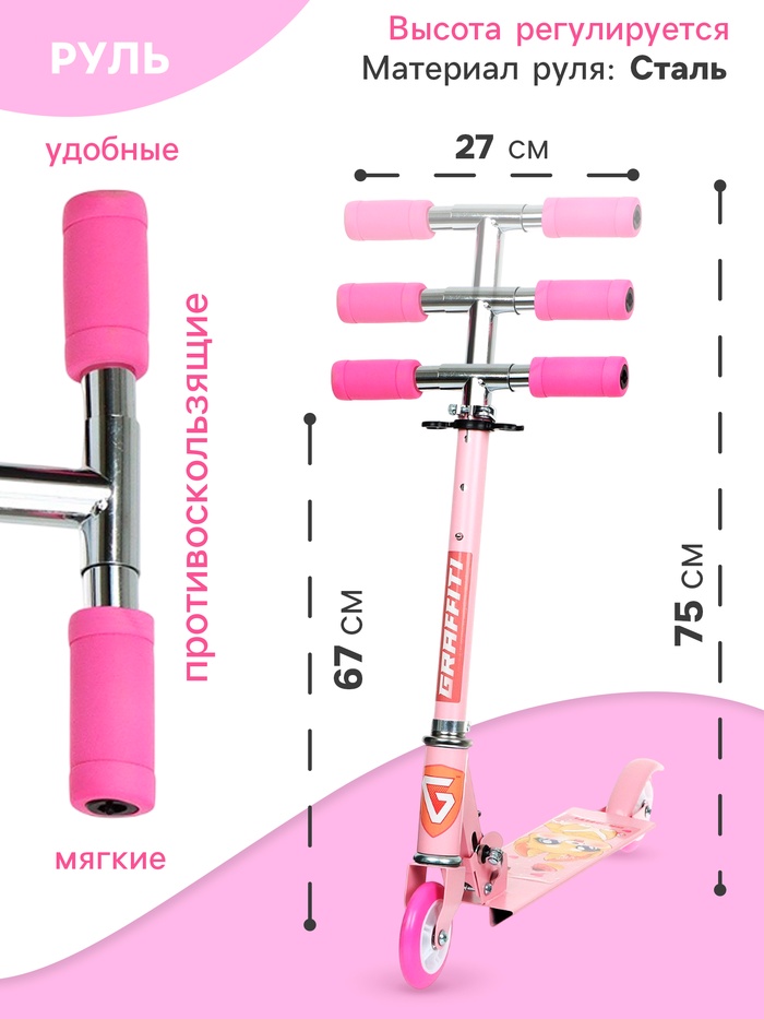 Самокат GRAFFITI «Кошечка», складной, колёса PVC 100 мм — Характеристики