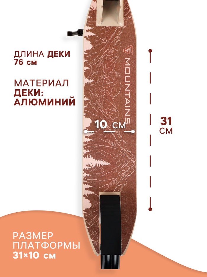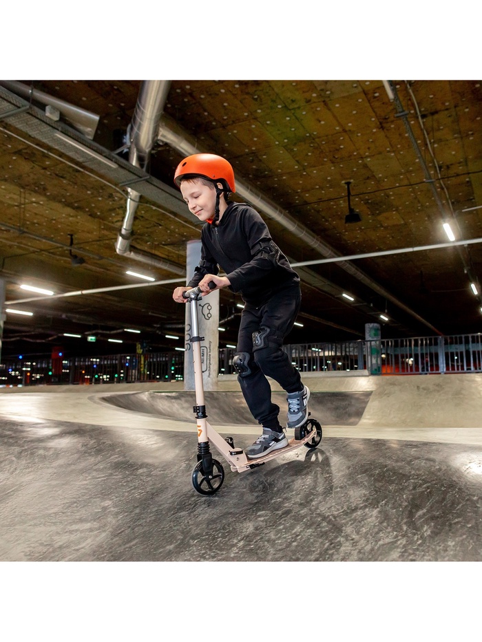 Колёса изготовлены из полиуретана, что повышает стойкость к коррозии и износу, имеют высокие показатели грузоподъёмности и их невозможно проколоть. Дека изготовлена из алюминия, поэтому самокат мало весит и отличается высокой манёвренностью.