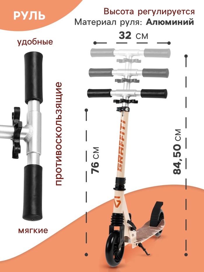Самокат GRAFFITI, складной, колёса PU 145 мм, ABEC 7, амортизатор передний, алюминиевый — Характеристики