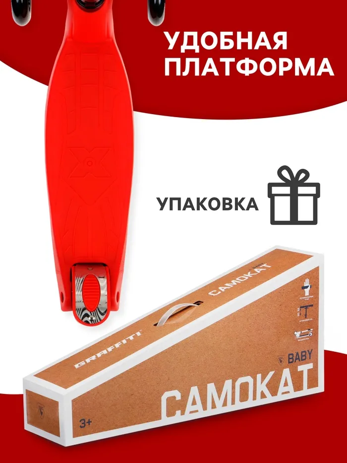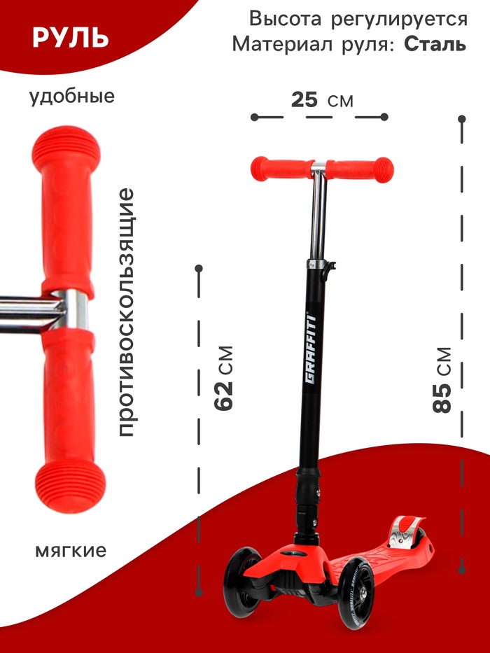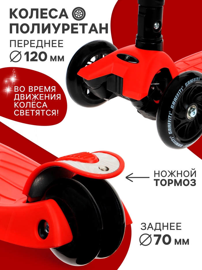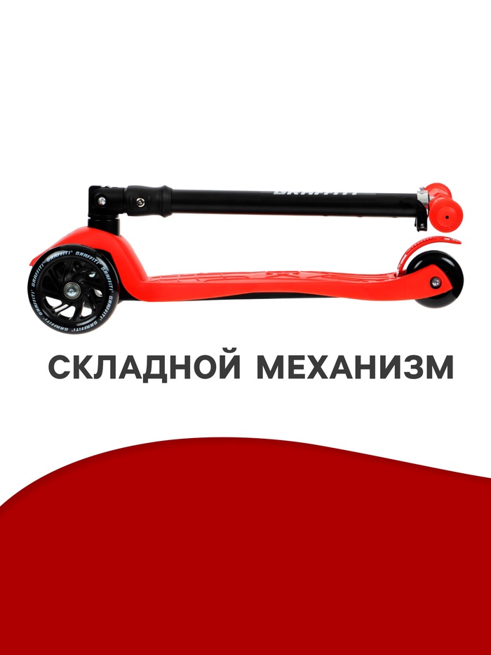 Самокат складной GRAFFITI Baby, колёса световые PU 120/70 мм, ABEC 7, цвет красный — Характеристики