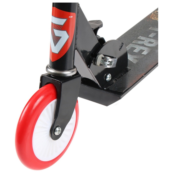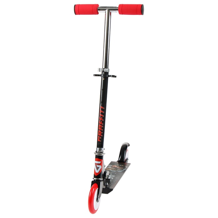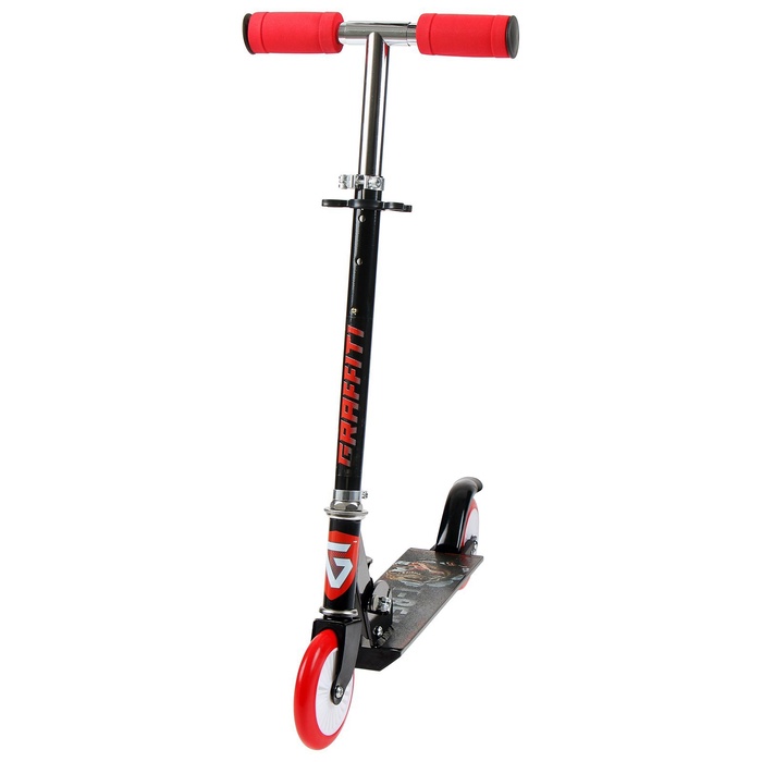 Рама складывается: рулевая стойка опускается к деке. В таком состоянии самокат занимает мало места. Платформа с шероховатым покрытием предотвращает скольжение ног. Высота руля регулируется и фиксируется в трёх положениях.