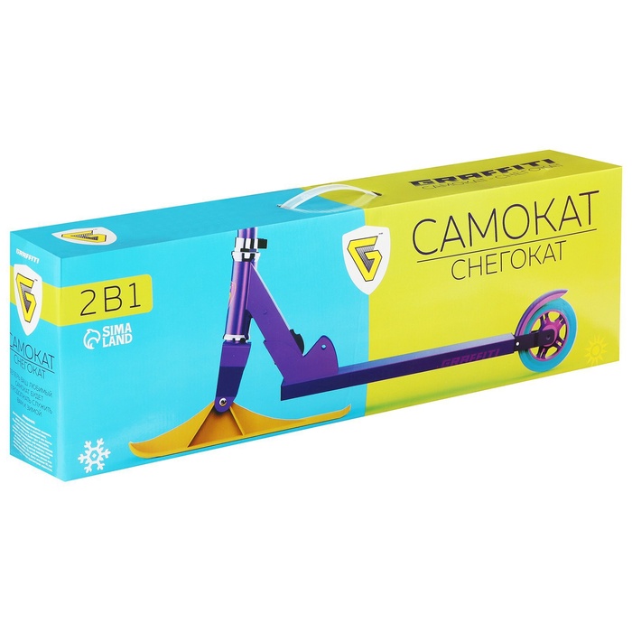 Детский самокат-снегокат — новая модель для летнего и зимнего активного отдыха. Конструкция представляет собой раму самоката, на которую установлены лыжи. Передняя лыжа управляется поворотом руля. Колёса можно установить в любой момент, для этого в комплекте есть всё необходимое.