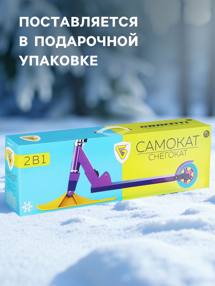 Самокат-снегокат актуален зимой и летом. На колёсах можно кататься по любым ровным поверхностям в сухое время года, зимой — на лыжах по снегу.