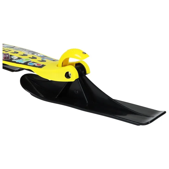 Детский самокат-снегокат — новая модель для летнего и зимнего активного отдыха. Конструкция представляет собой раму самоката, на которую установлены лыжи. Передняя лыжа управляется поворотом руля. Колёса можно установить в любой момент, для этого в комплекте есть всё необходимое.