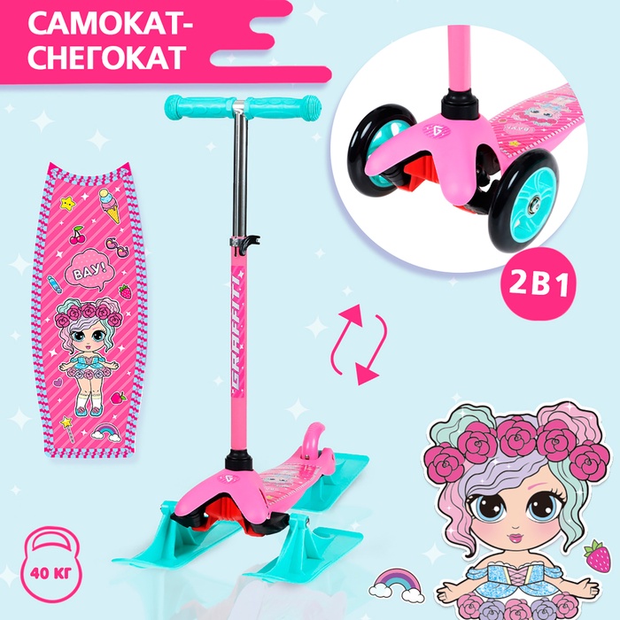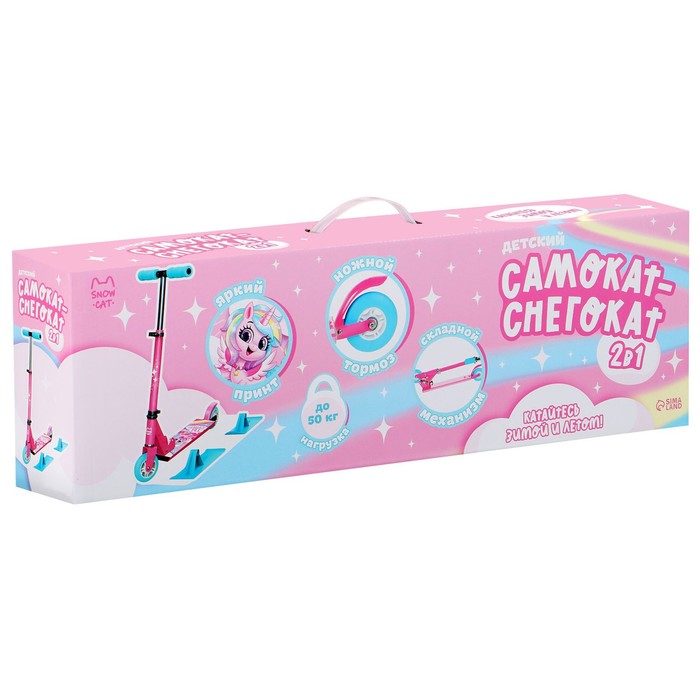 Самокат-снегокат 2 в 1 Snow Cat, колёса 120 мм, голубой, розовый — Характеристики