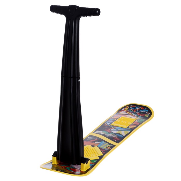 Рама складывается: рулевая стойка опускается к деке. В таком состоянии самокат занимает мало места. Платформа с шероховатым покрытием предотвращает скольжение ног. Высота руля регулируется и фиксируется в трёх положениях.