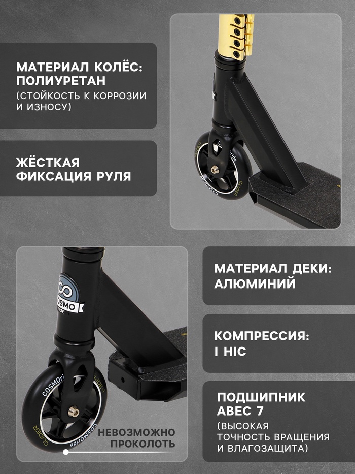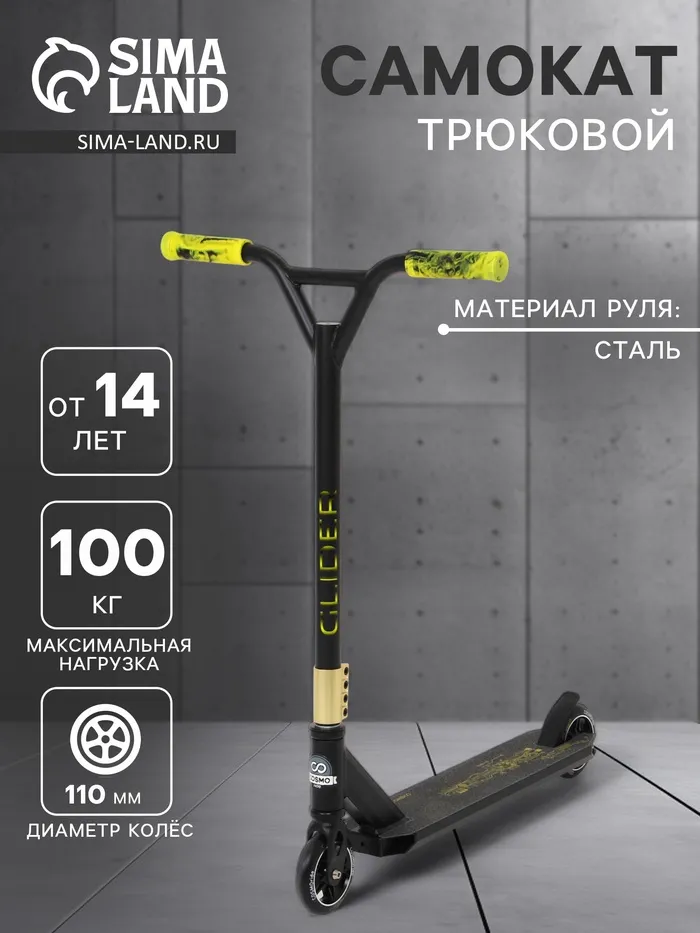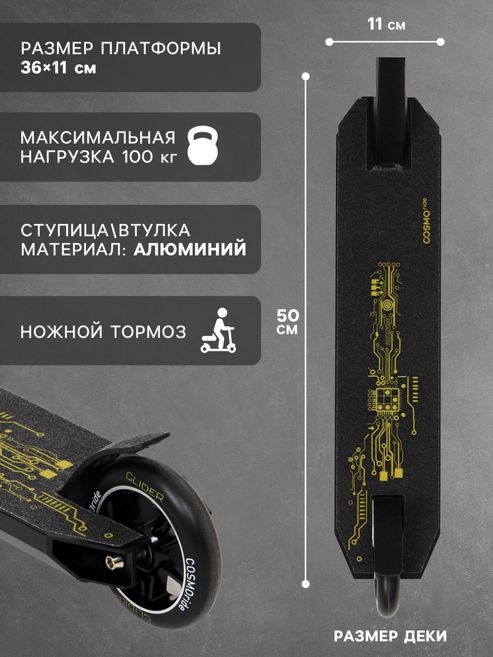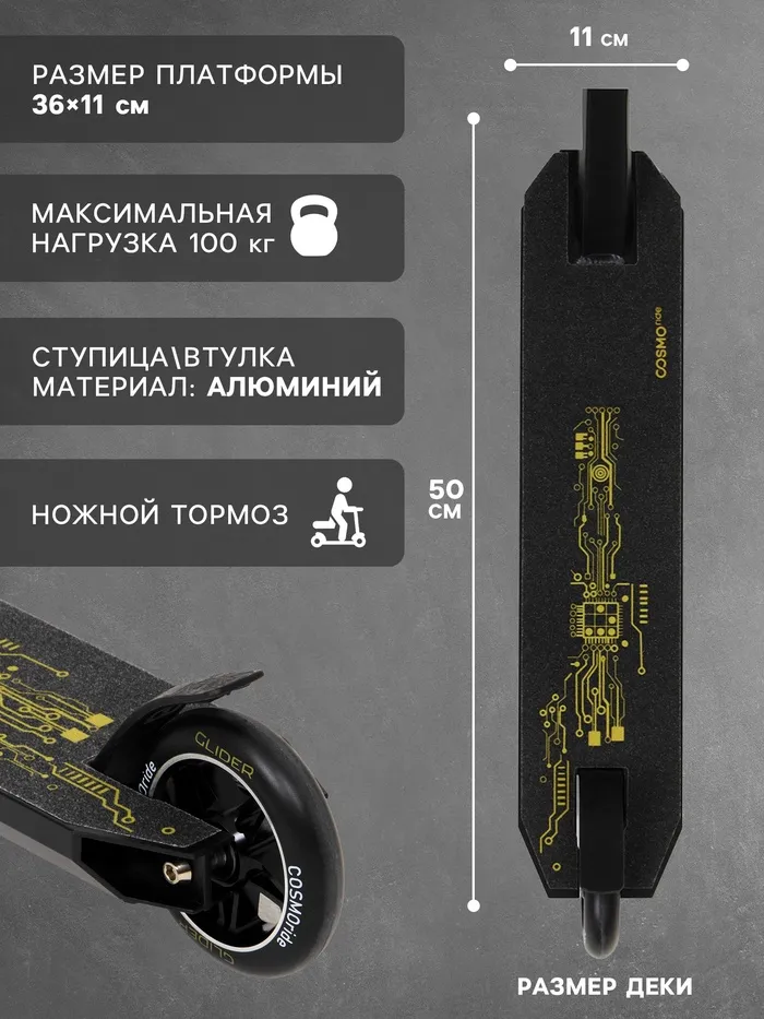 Самокат трюковой COSMORIDE GLIDER CG2021, колёса PU 100 мм, ABEC 7, цвет жёлтый — Характеристики